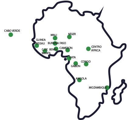 Los barcos salen desde el Puerto de Bata hacia el África del Oeste, donde desembarcan en el puerto de Lome y de allí hacia: Mali, Burkina Faso, Benín, Níger y Costa de Marfil